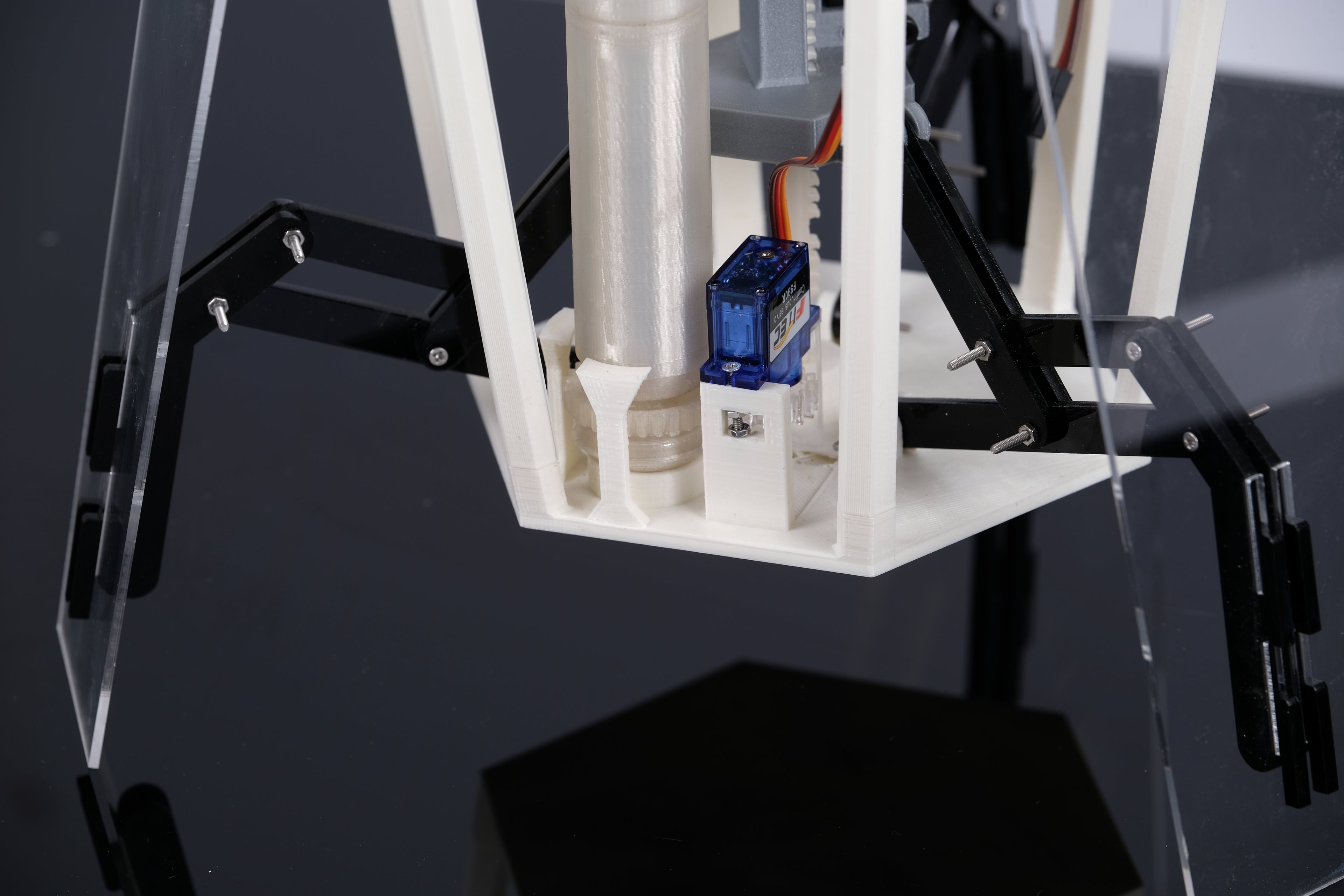 Mechanical parts are produced through 3D printing for assembly and testing.