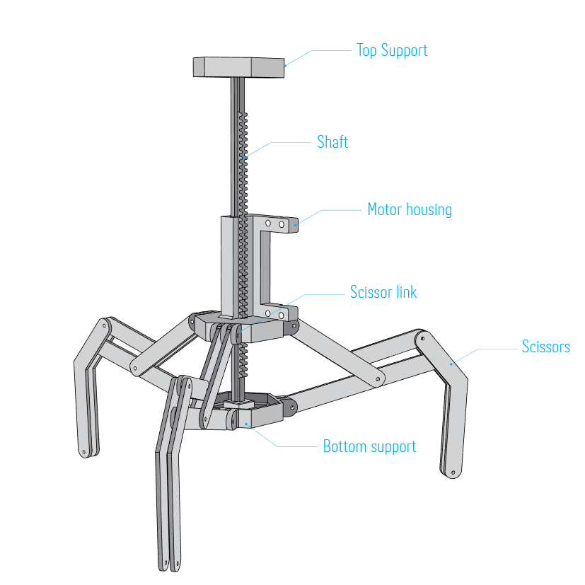 Early scissor linkage prototype revealed structural limits and informed later iterations.