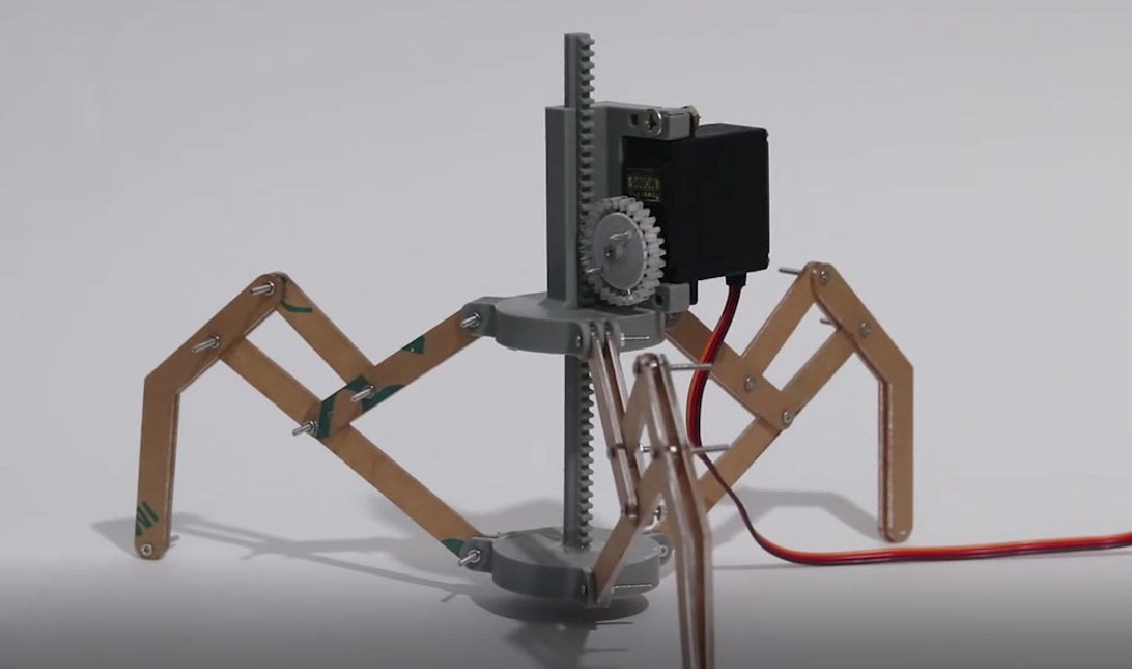 CAD layout defines components and motion of the motorized linkage.