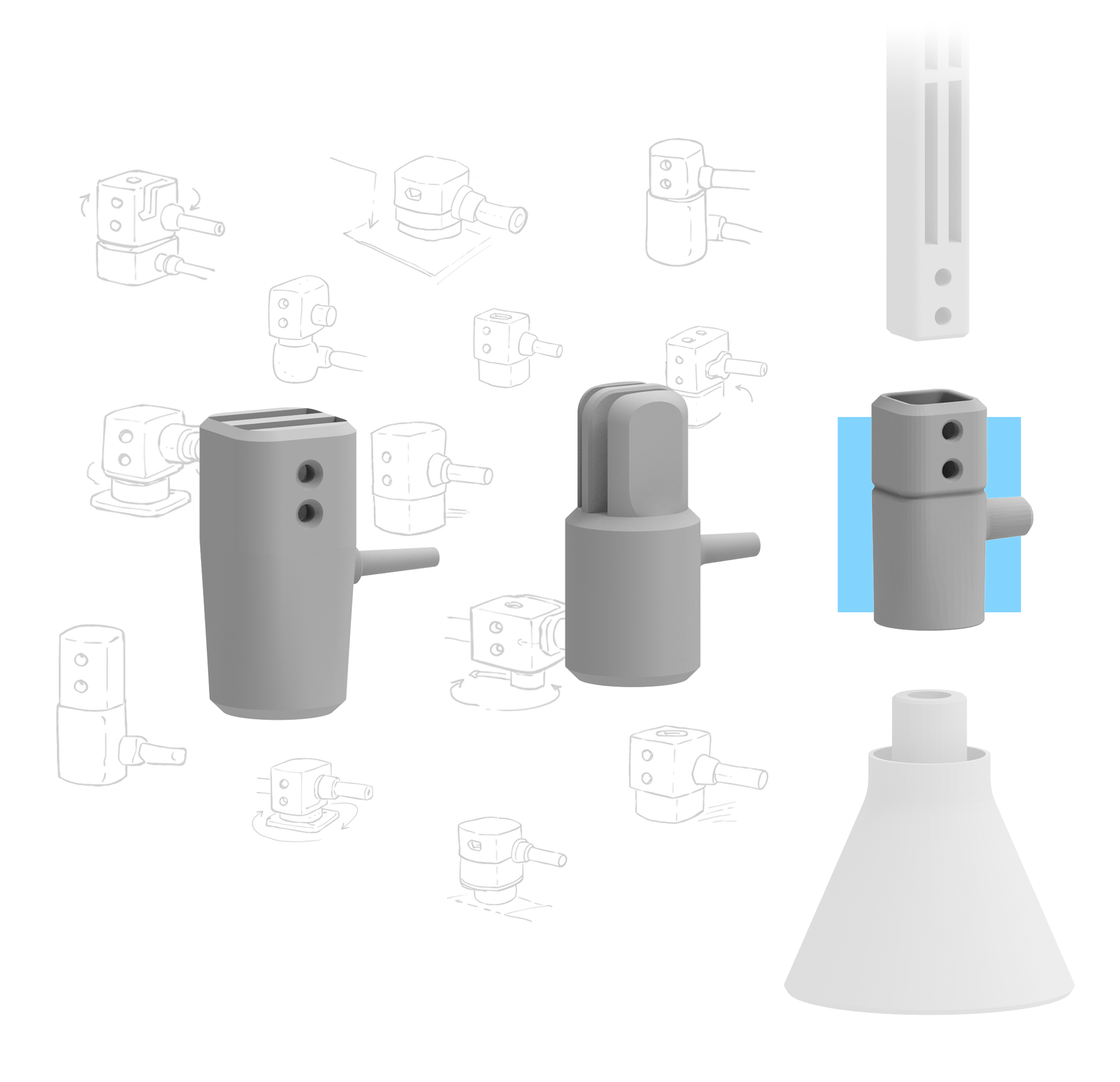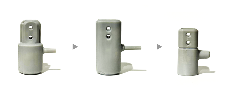 Three iterations refined the form, with each version becoming smaller, more secure, and more reliable. The final design significantly improved sealing performance and overall gripper stability.