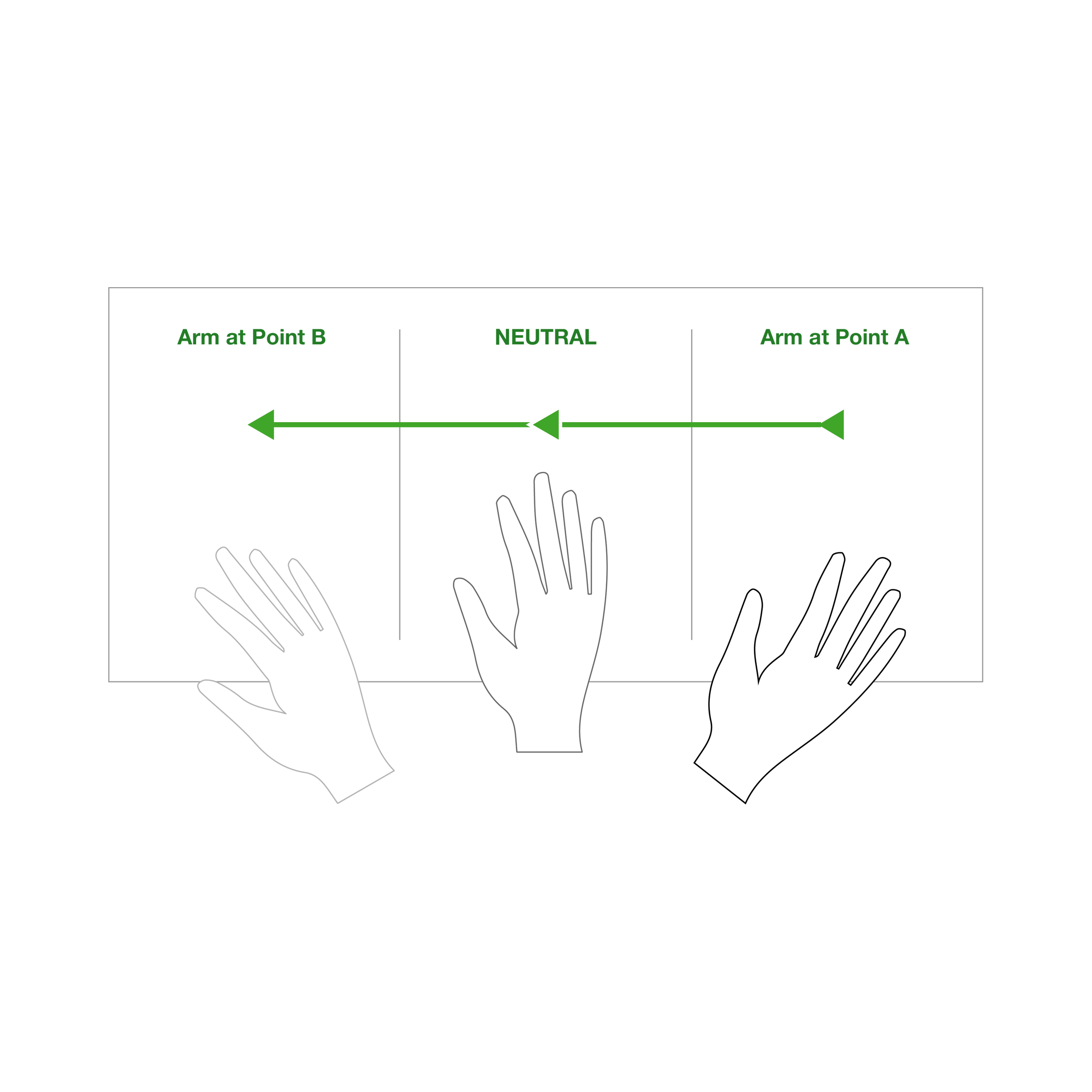 Moving the hand left or right directly maps to the robotic arm’s X-axis movement, enabling intuitive positioning without physical controls.