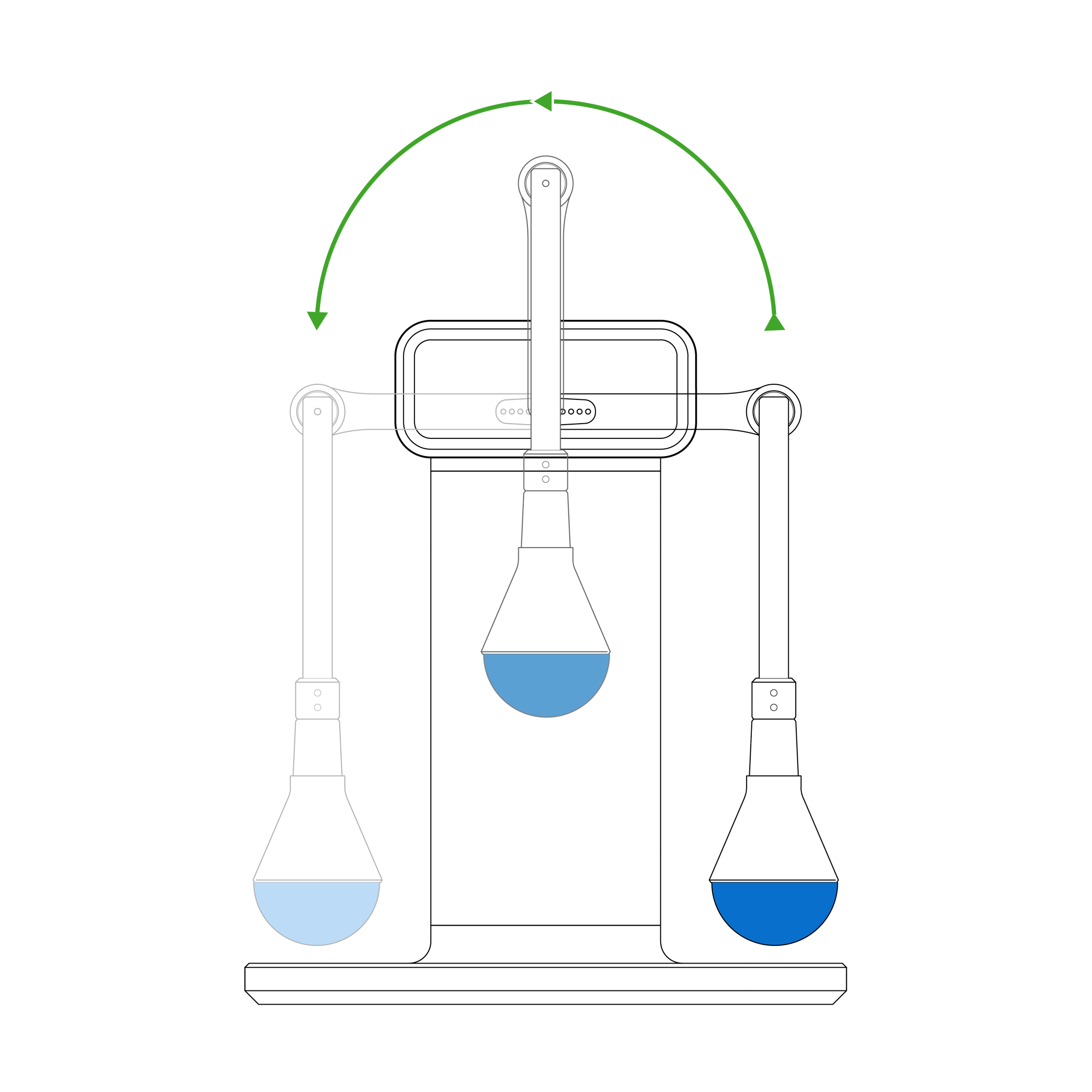 The form is divided into three parts: base, tower, and arm. Each manages motion, wiring, and balance within a single cohesive system.